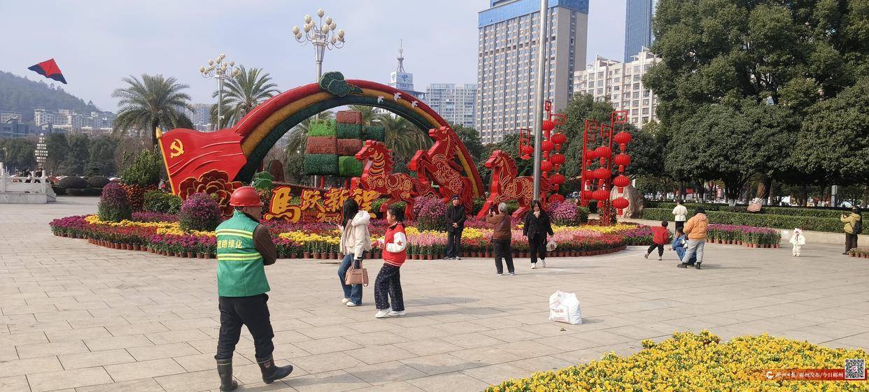 高铁西站则通过“郴州接待您、马年大吉”的闪耀笔墨与“福”字阻拦相纠合,心事融入当代园艺手法,将多彩花草与习气元素有机衔尾,既传递出传统文化的温雅,也展现出城市的当代活力。